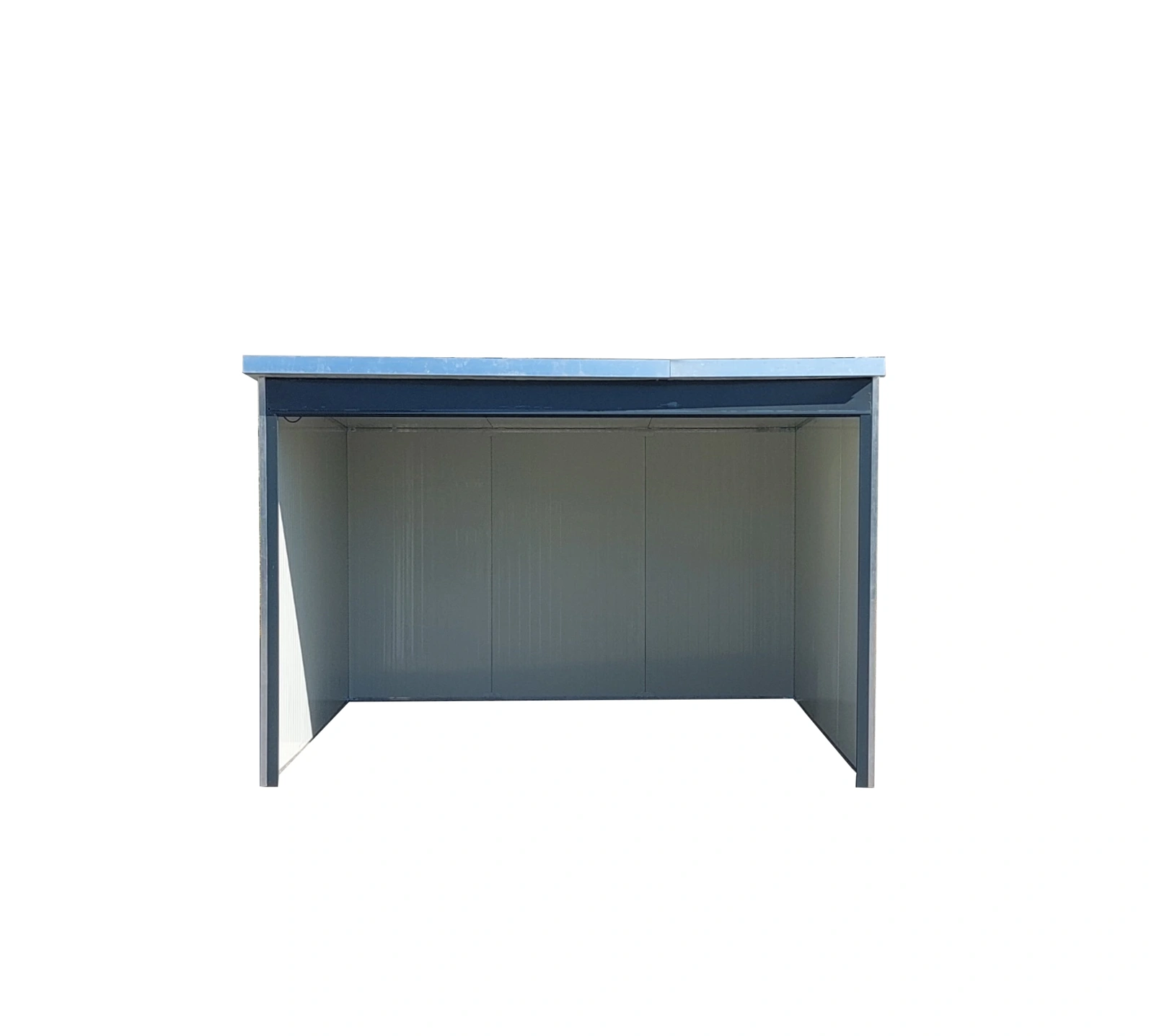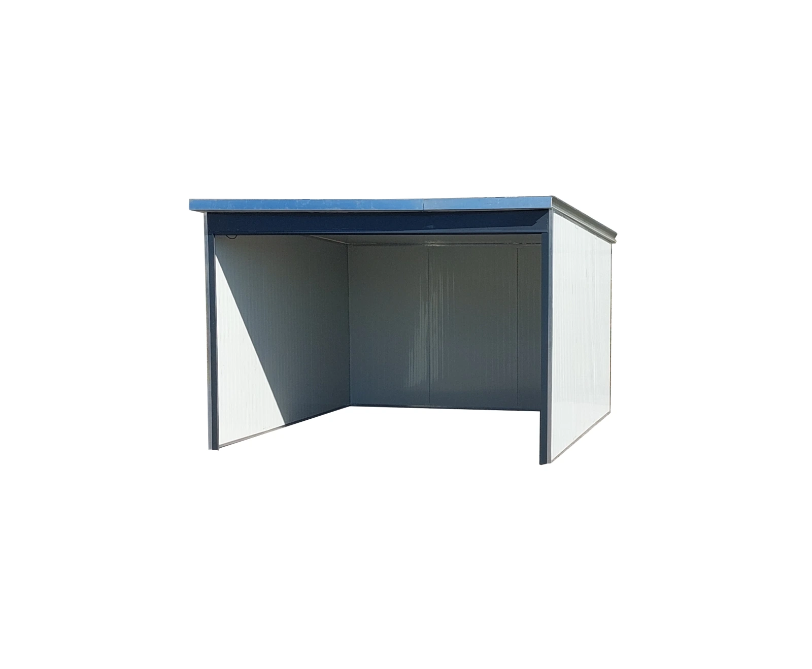 Masívna oceľová konštrukcia, steny vyhotovené z plných dvojvrstvových nehrdzavejúcich oceľových (pozinkovaných) častí, steny sú izolované purpenou, ktorá je odolná voči slnečným lúčom a zabraňuje prehriatiu. Vyrobené z nehrdzavejúcich oceľových (pozinkovaných) častí.Výška vpredu 2 metre, vzadu 1,8 metra.